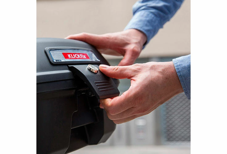 Grâce à ses charnières déportées, le généreux coffre Citybox peut être totalement ouvert même lorsqu’il est monté sur le vélo, sans que la selle ne gêne.